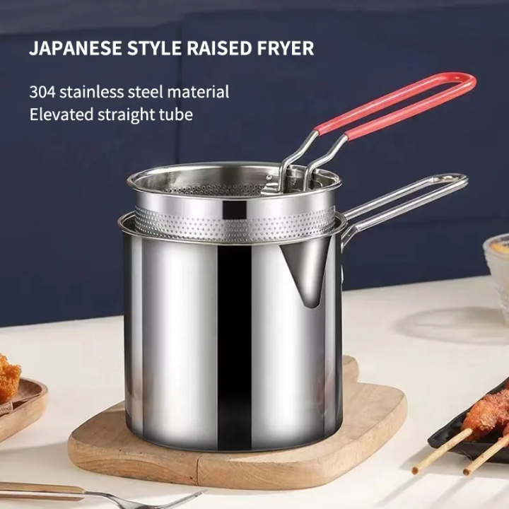 This frying pot is made of high-quality stainless steel, ensuring durability and long-lasting use. It is dishwasher-safe for quick and easy cleaning. Designed for frying a variety of foods like chicken, fries, and tempura, it works perfectly on gas, electric, and induction cooktops. The included strainer basket makes frying and draining oil simple and efficient.