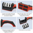 If your kitchen knives have lost their edge, this Knife Sharpening Tool is the perfect solution to restore sharpness quickly and safely. Designed with a user-friendly three-stage sharpening system, it ensures your blades are always razor-sharp. The first coarse slot uses durable tungsten steel blades for initial sharpening and V-shape restoration, while the finer ceramic slots hone, polish, and remove burrs for a smooth finish.