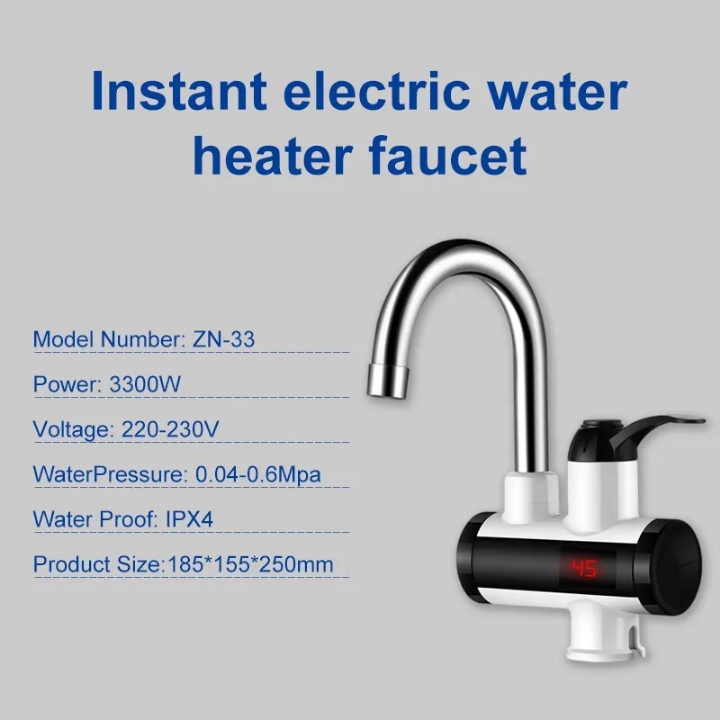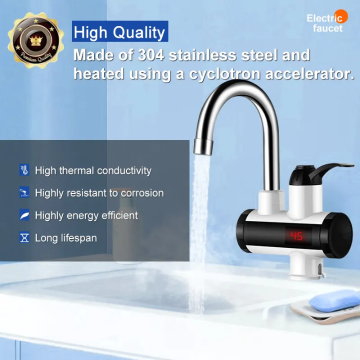 This tankless electric water heater faucet provides instant hot water as it flows, eliminating the need for bulky storage tanks. Made from premium 304 stainless steel, it ensures durability and safety. The built-in LED display shows real-time water temperature (e.g., 45°C), while the 360° rotating design offers flexibility for kitchen or bathroom use. Compact, efficient, and space-saving—perfect for modern homes.